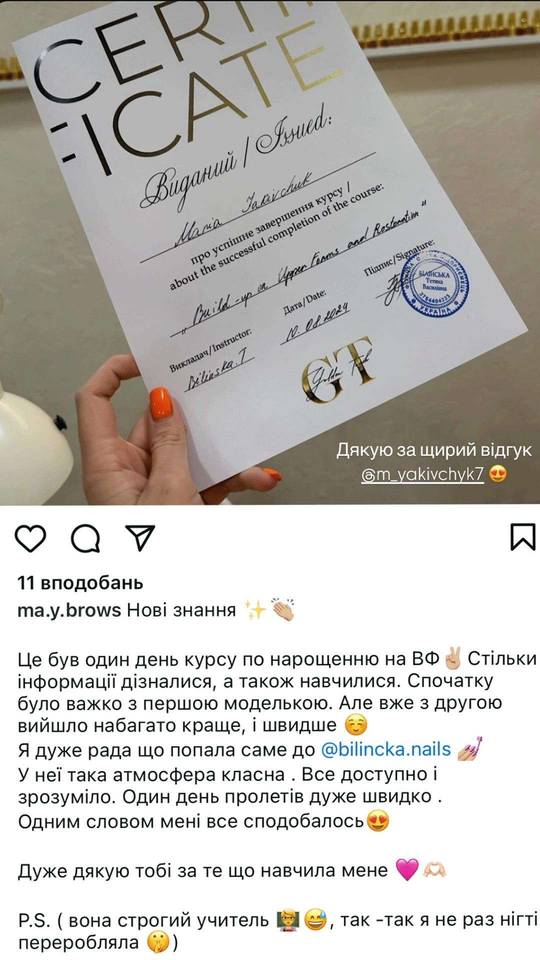 Я – Білінська Тетяна, або @bilincka.nails і хочу поділитися своєю історією 🧡
